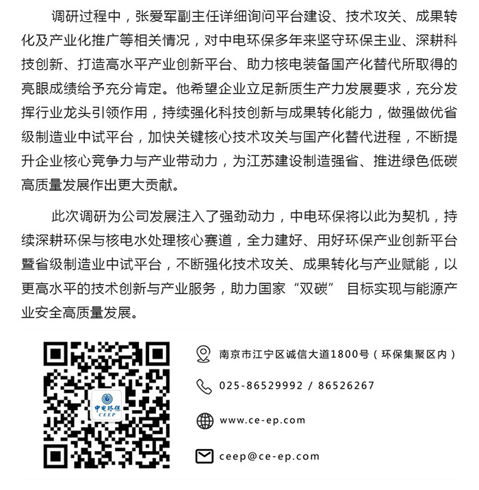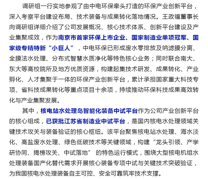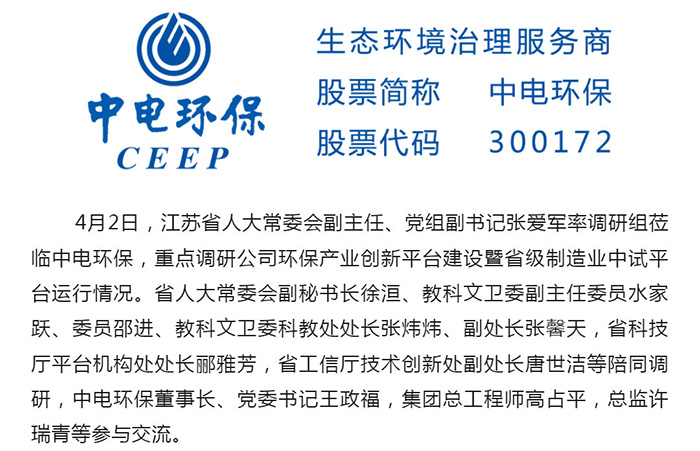 中電環(huán)保股份有限公司是南京市首家環(huán)保上市公司(股票簡稱:中電環(huán)保,股票代碼:300172),南京環(huán)保產(chǎn)業(yè)協(xié)會會長單位,國家級聯(lián)盟理事長單位,是生態(tài)環(huán)境治理服務(wù)商,主營(3+1):水務(wù)、固危廢、煙氣治理及產(chǎn)業(yè)創(chuàng)新平臺,包括:工業(yè)水處理、污水處理及水環(huán)境綜合治理;固危廢土壤、污泥餐廚垃圾處理;煙氣及VOCS治理;智慧環(huán)保;高端裝備等。